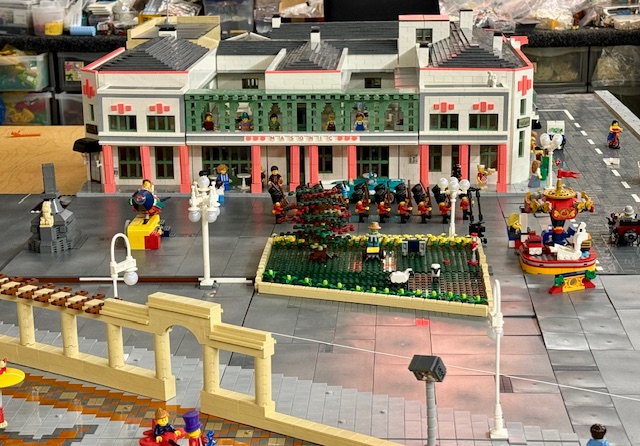 | Masonic Hotel Building (2025) In April 2025 I started sketching the facades of the Masonic Hotel in Bricklink Studio. In parallel I created a small swag set for swapping with other fans. The set consists of some iconic facade elements of the Masonic plus a printed minifigure, instructions are available in the link section. The first Masonic Hotel was opened on the present site by Proprietor Joseph Gill on 14th September 1861. In 1875 the hotel was extended to cover the complete section, the proprietor at this time was Mr A Dalziell. On May 23 1896 Masonic Hotel was destroyed by fire. Tenders were called for within a month of the fire and the Masonic was rebuilt in 1897 by Mr C Fleming McDonald in what was to become the grandest hotel in Napier destroyed during the1931 earthquake. The 1932 Masonic hotel was designed by Wellington architect W J Prowse and built by Edwards Construction Co. It is a simple symmetrical structure, enlivened only by its elaborate upper storey wooden pergola facing the sea and it’s conspicuous “MASONIC” in Deco capitals of red lead light in the canopy at the entrance of the hotel. It was built at the price of 41.000 Pound and spans almost a whole block. The exterior structure remains basically unchanged from when it was first built. However, the original finish was pure white with lettering on Parade elevation picked out in black, decoration on other facades (including parapets) in pale mauve. The building was originally designed to take another floor. Queen Elisabeth II stayed at the Masonic during her 1953/4 Royal Tour. |