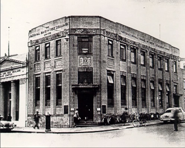 | National Bank On the corner of Hastings and Emerson Street there is now the rather new building of ANZ Napier branch right next to the Masonic Hotel complex. However, initially in the 1930s after the earthquake, two other buildings were erected at the same place. On the corner, 90 Hastings Street the National Bank was built in 1933 in Stripped Classical style as two storeys reinforced concrete building by Fletscher Constructions & Co with Atkin & Mitchell as architects. Although modernized in 1963 the building was demolished together with the Narwich Union Building in 1983 to make space for the new ANZ building. ![]() Original Two-tone plasdter finish randomly coloured to resemble Sydney sandstone (buff/biscuit) |